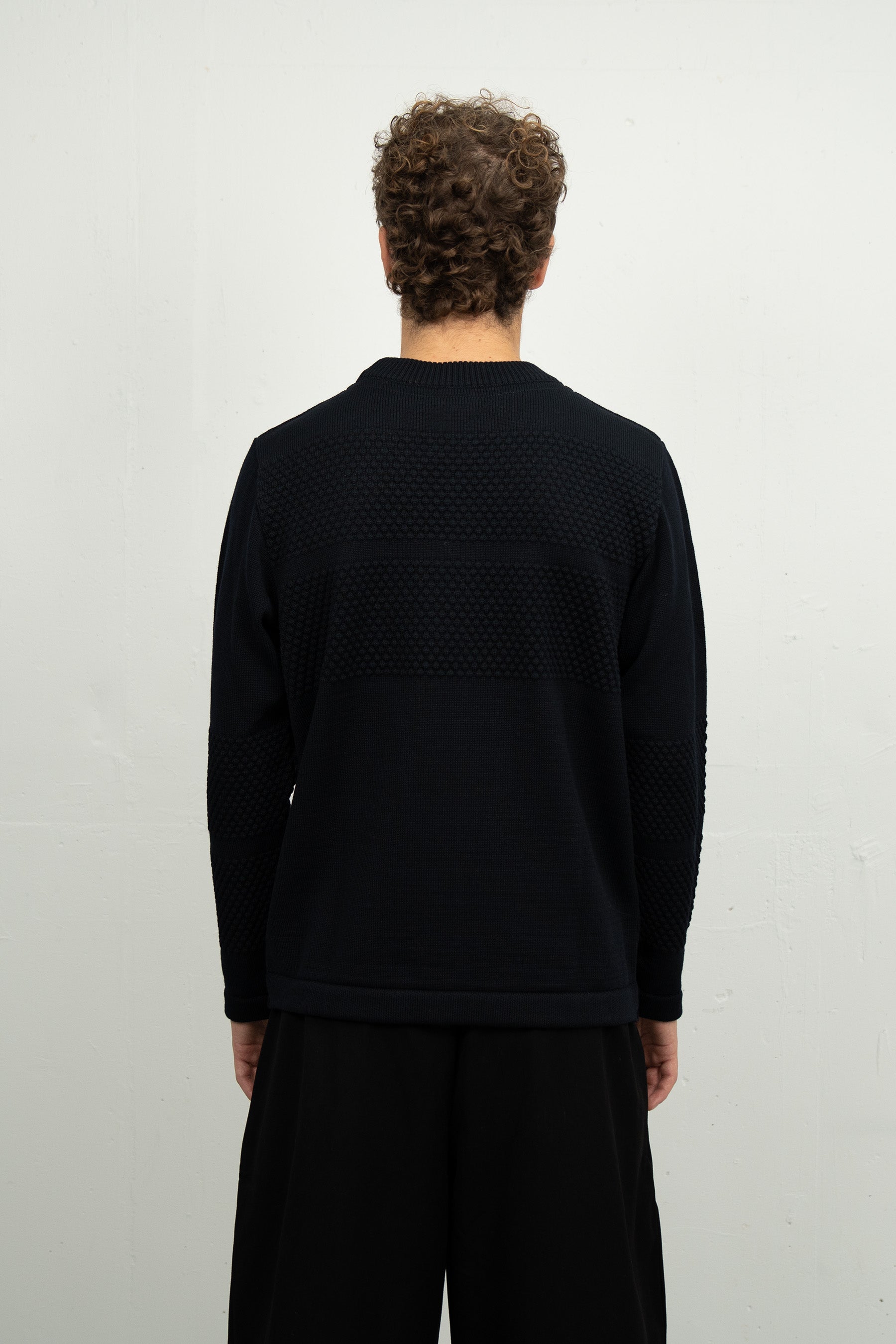 | DESIGN | Opdateret udgave af vores ikoniske Sømandstrøje. Indsatte ærmer for en mere konefktioneret silhuet. Bredere og kortere krop. Nyt layout for bobler / knopper - og en præcist defineret krave. Lettere end sin originale forgænger. |