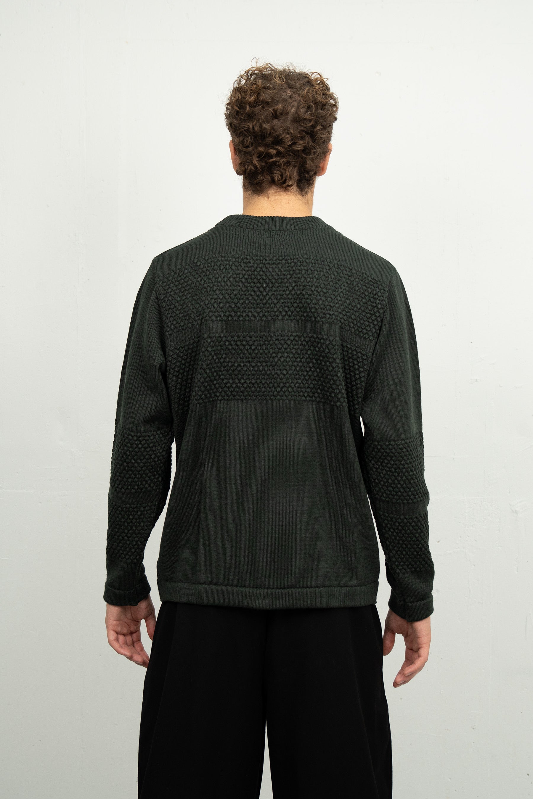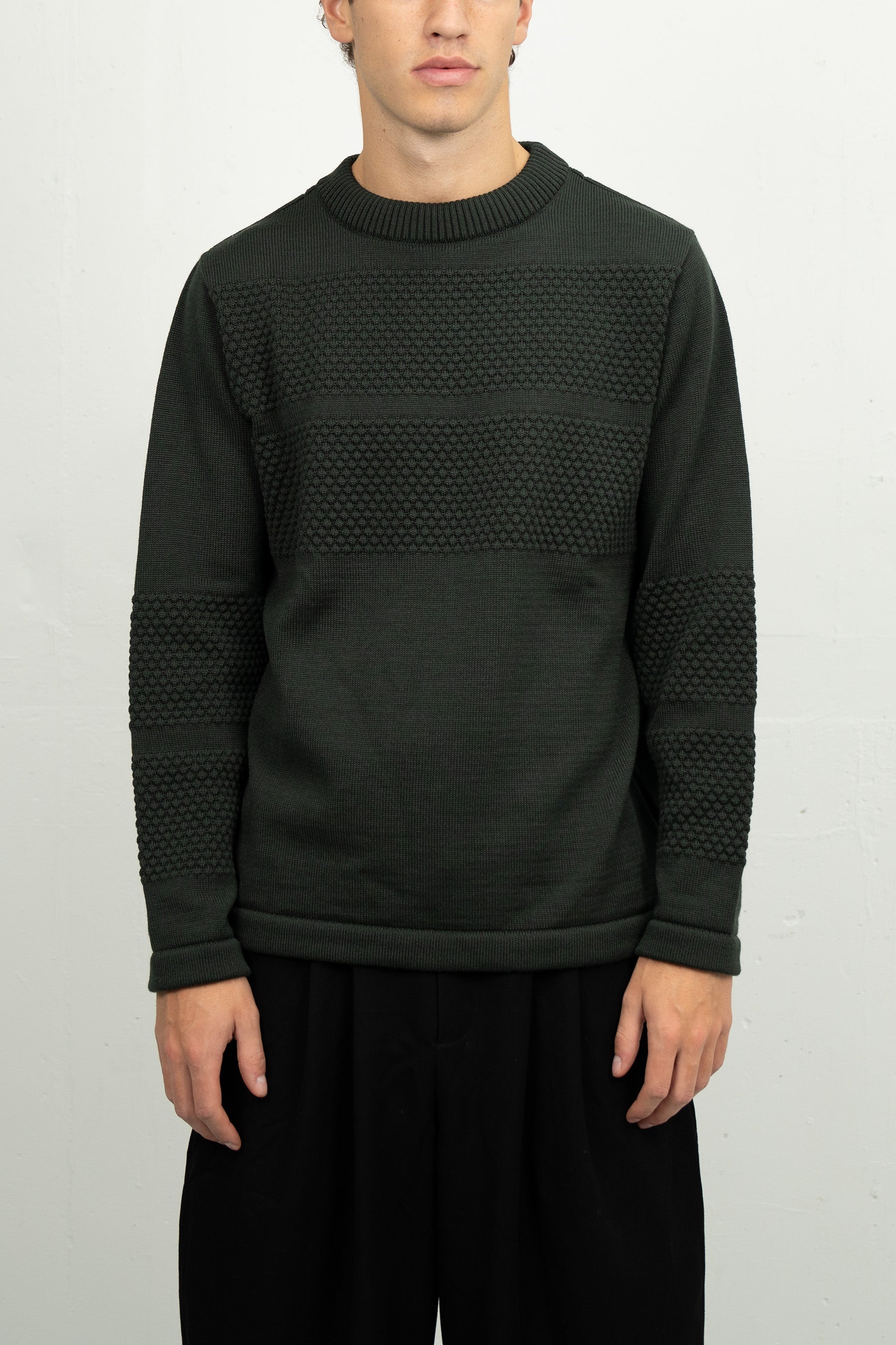 | DESIGN | Opdateret udgave af vores ikoniske Sømandstrøje. Indsatte ærmer for en mere konefktioneret silhuet. Bredere og kortere krop. Nyt layout for bobler / knopper - og en præcist defineret krave. Lettere end sin originale forgænger. |