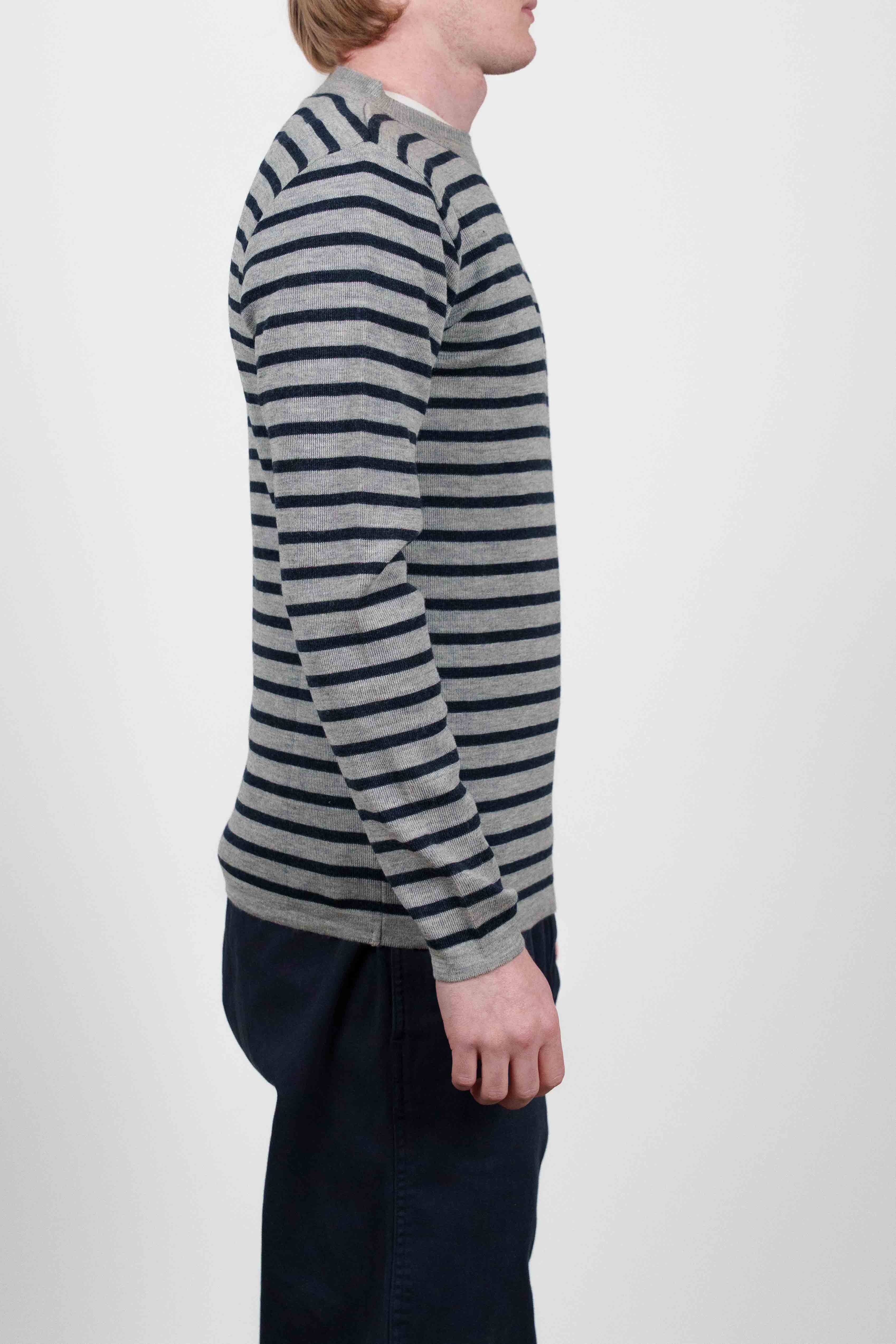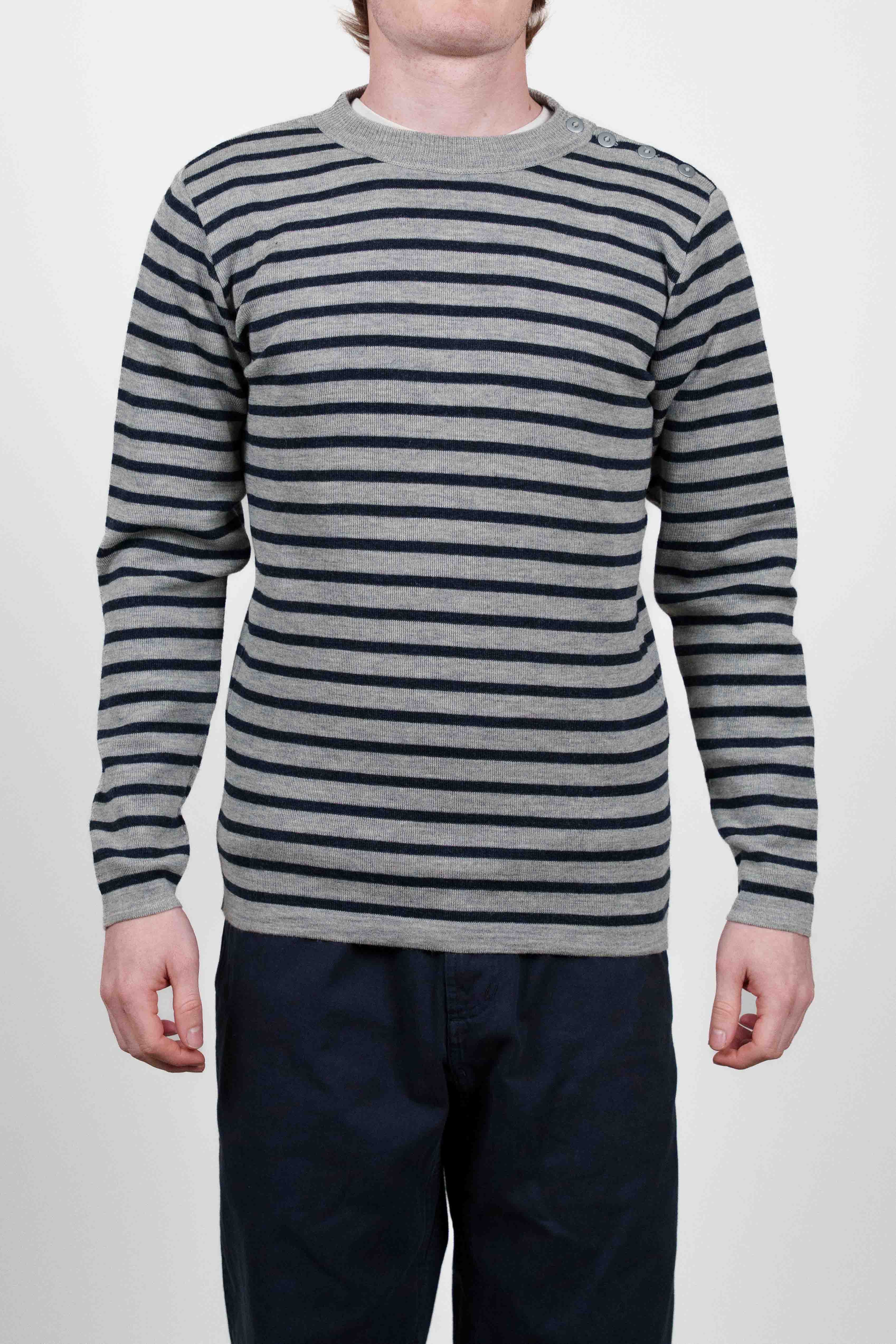 Den har en rund hals og er detaljeret med metalknapper på venstre skulder.