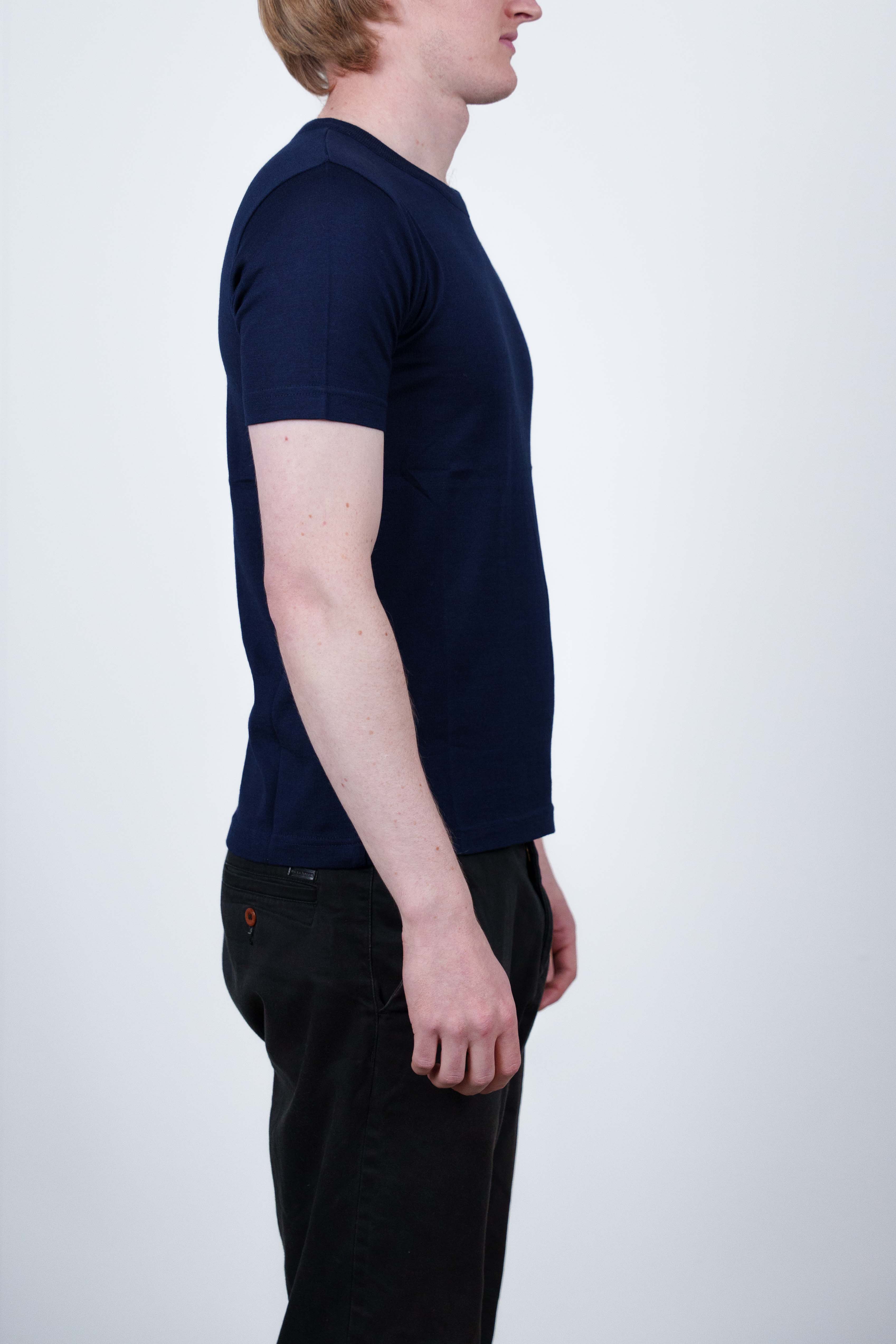 Den har en glat, finstrikket tekstur, typisk for en jerseykvalitet, som præsenterer en klassisk og yderst behagelig stil. Den luksuriøse blanding af kashmir og bomuld løfter dette essentielle stykke tøj til et nyt niveau.