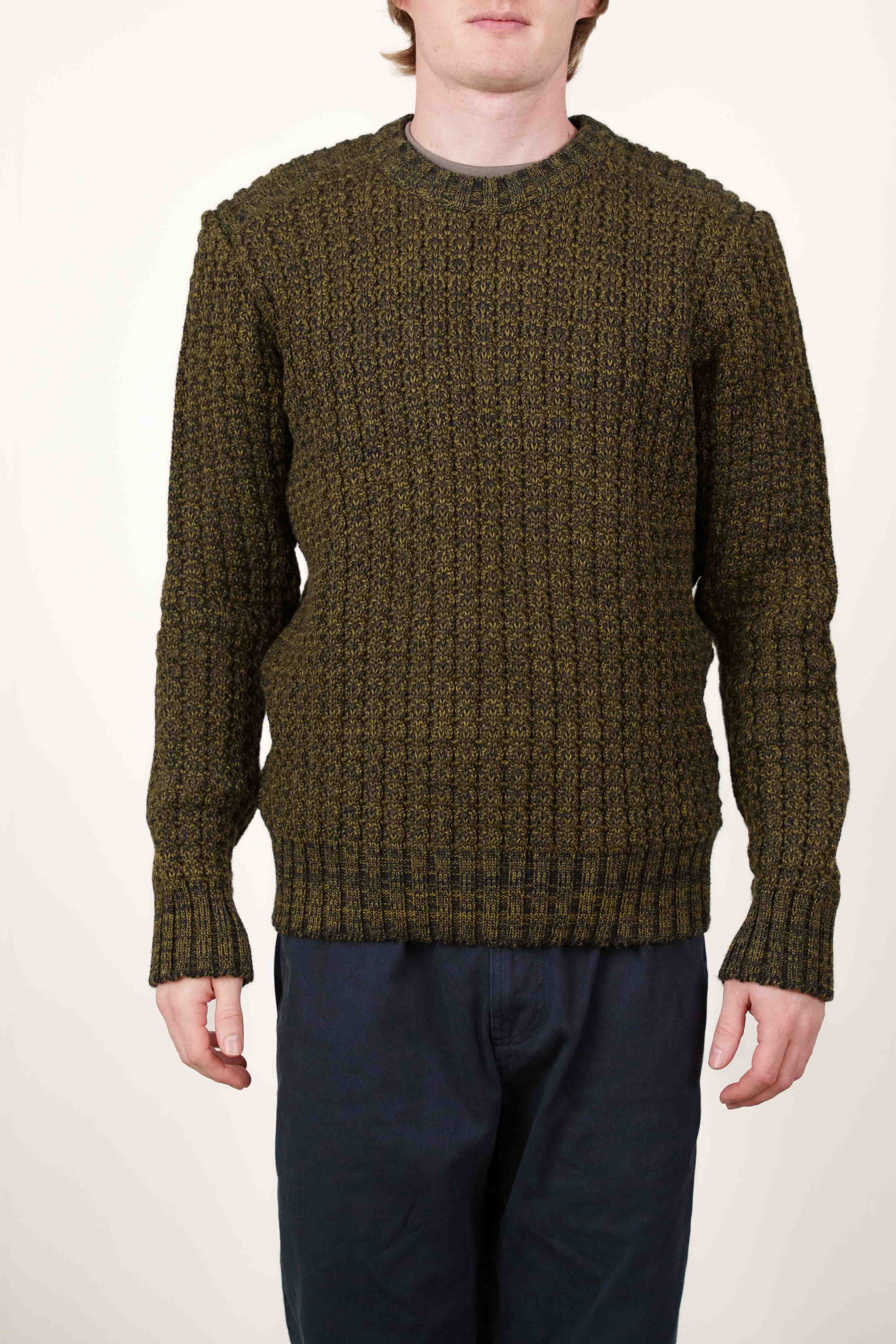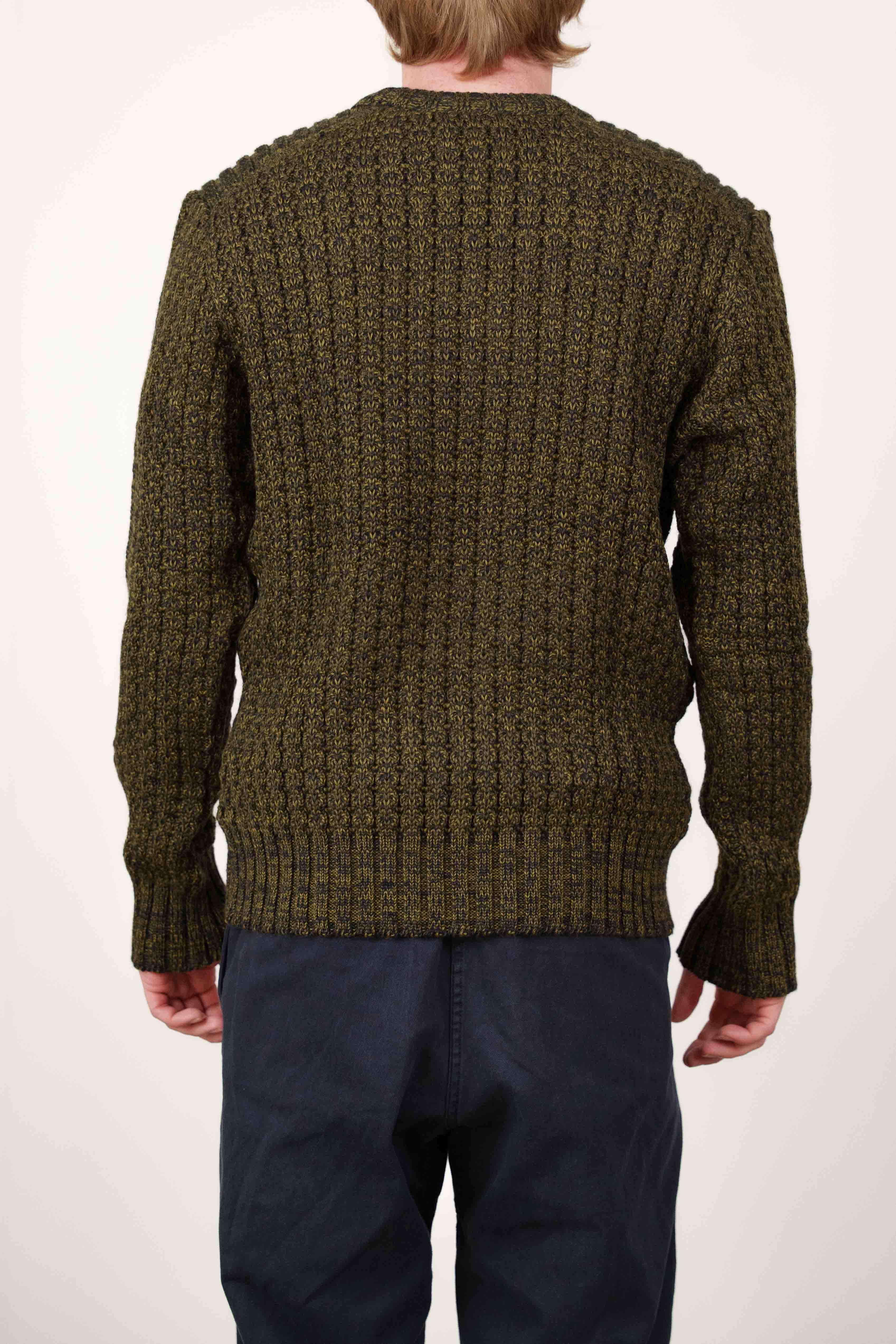 Olivengrøn crew neck sweater fra W013-kollektionen med et tekstureret, chunky strikmønster.