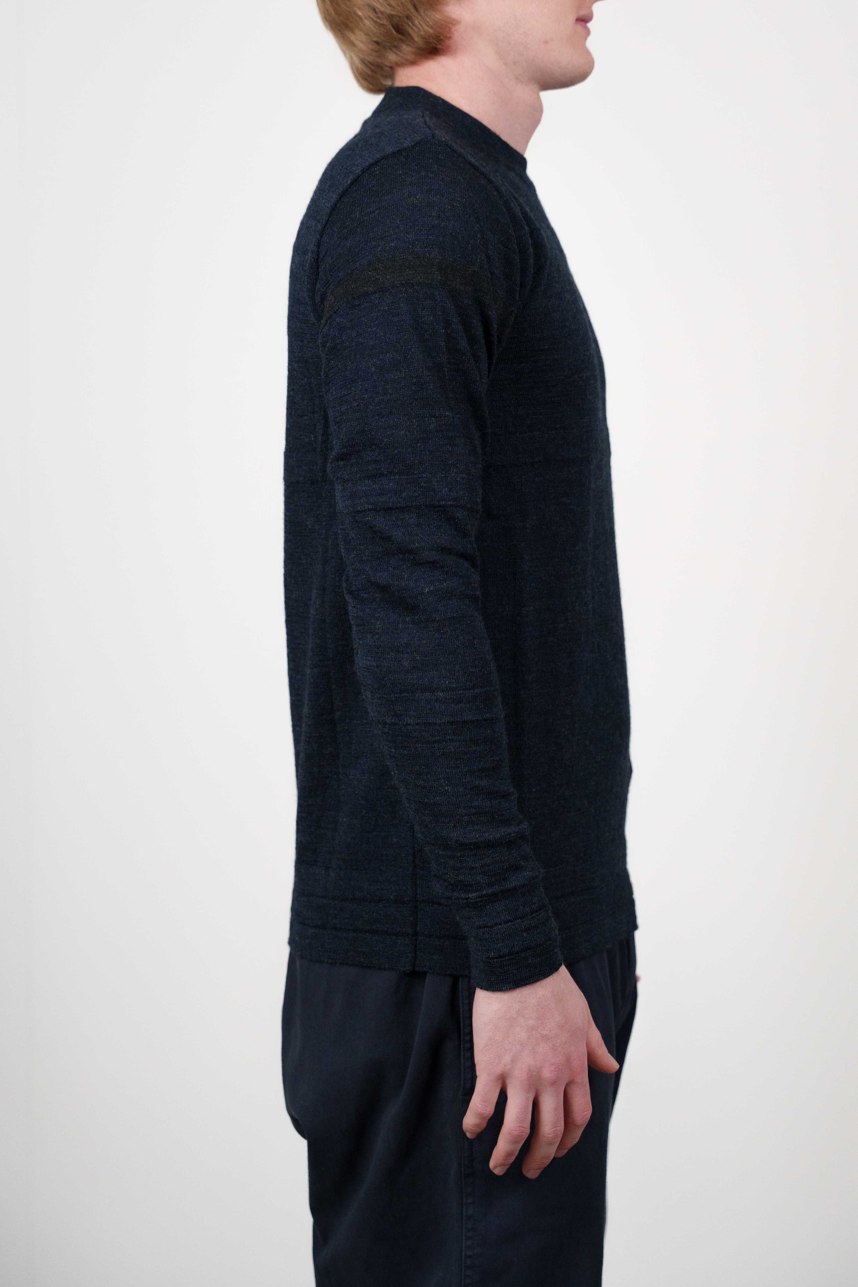 Har diskrete, vandrette ribpaneler på bryst, ærmer og forneden, som giver en struktureret finish.