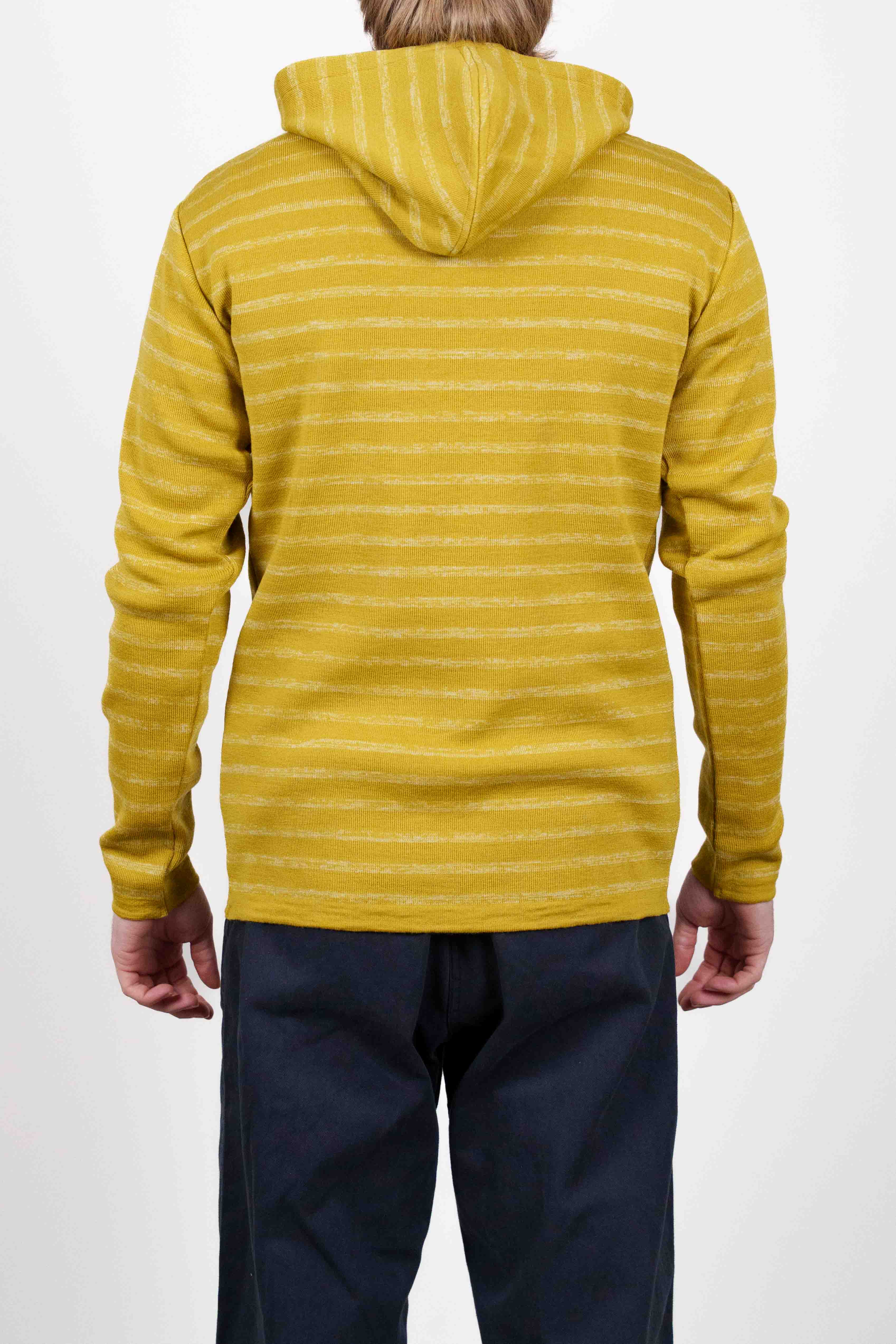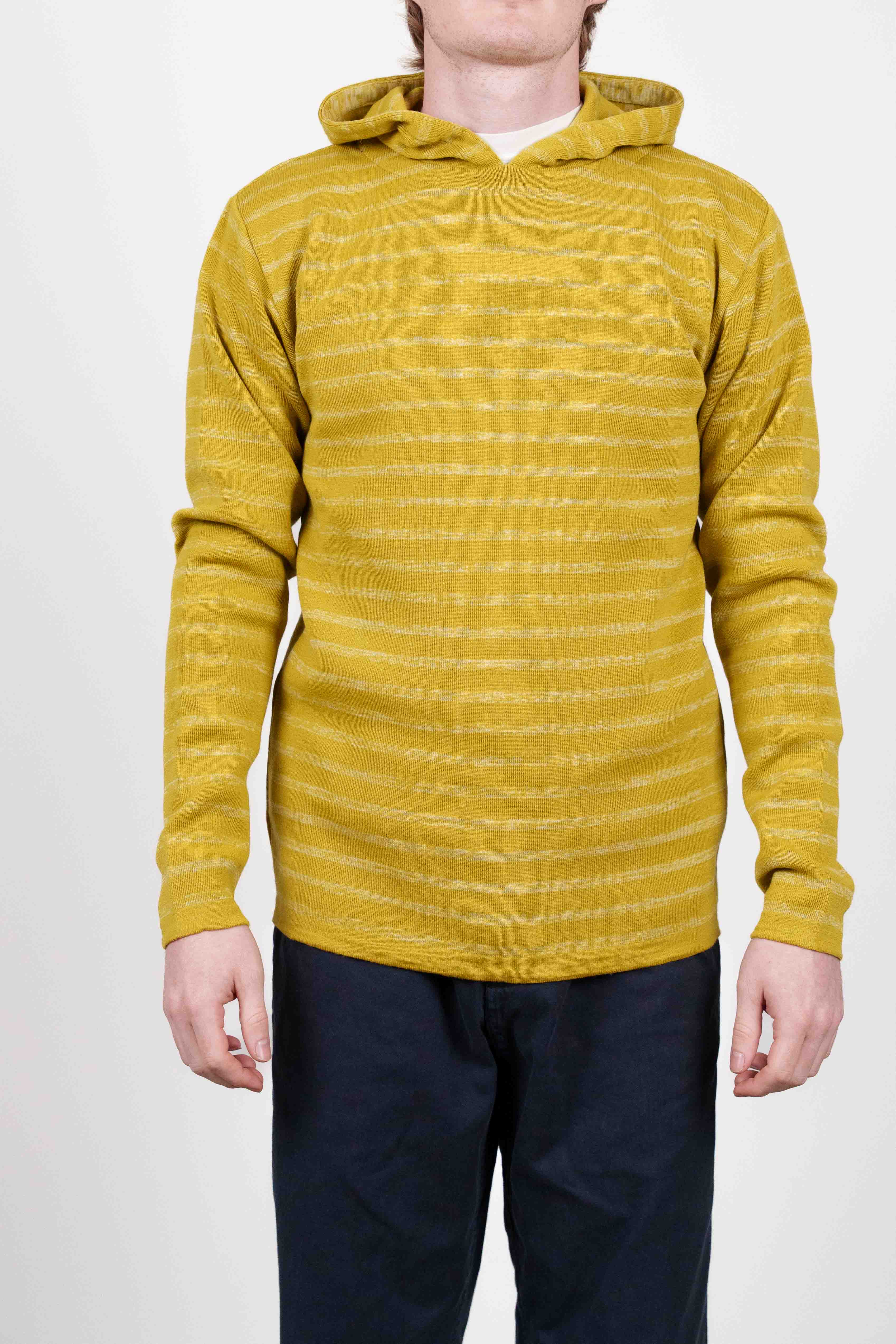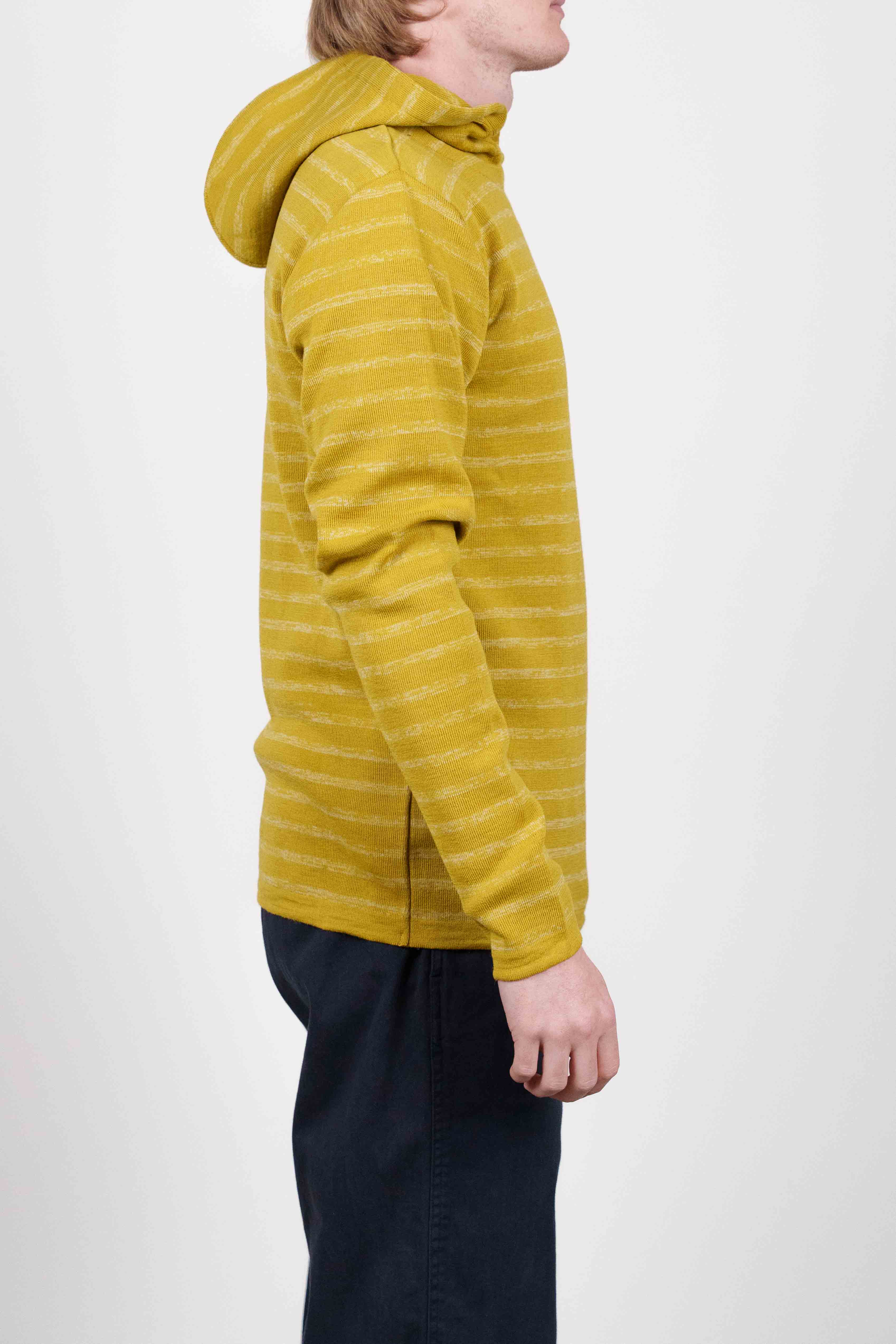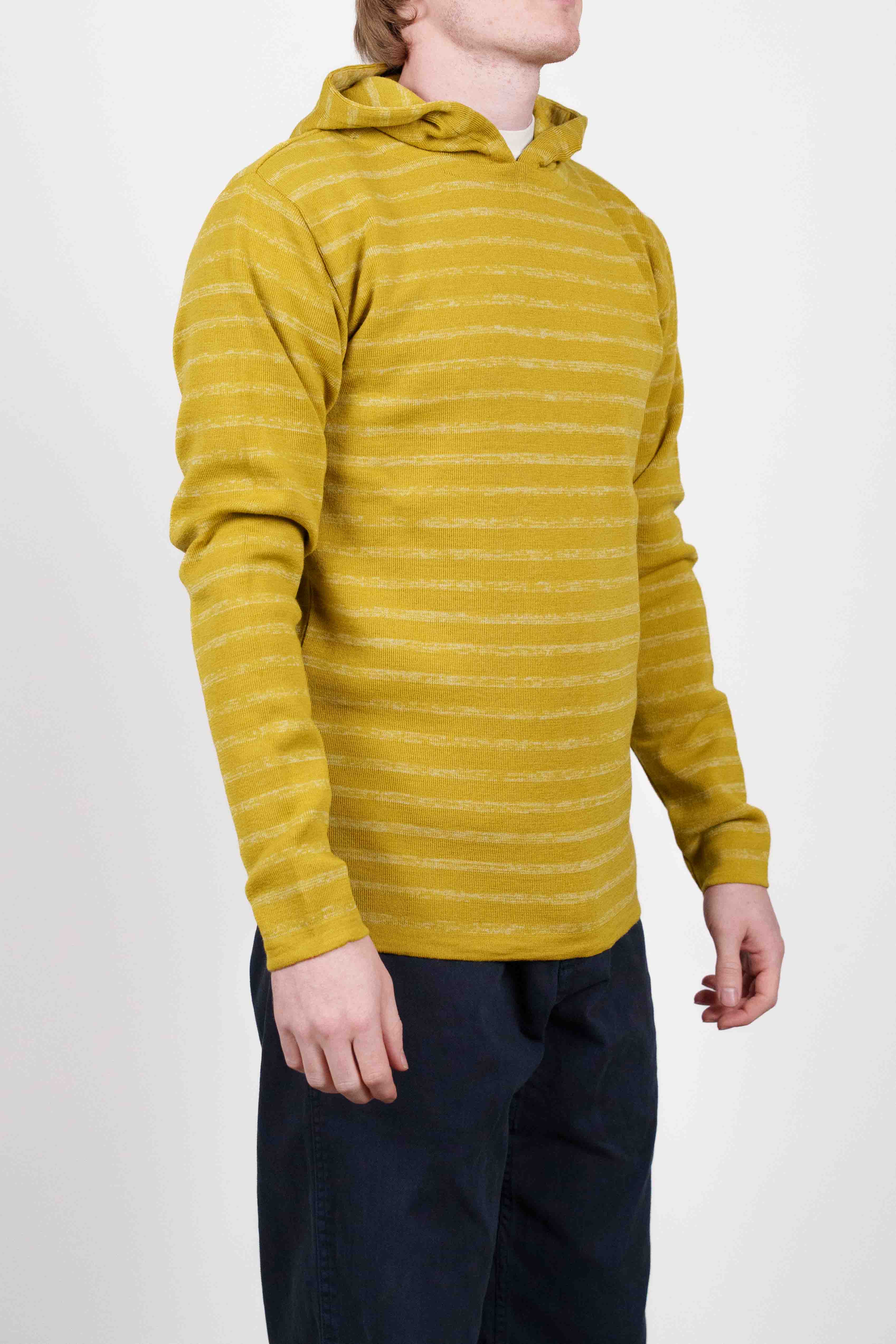 Gulstribet hættetrøje med lange ærmer og ribstrikket tekstur fra vores W015-kollektion.