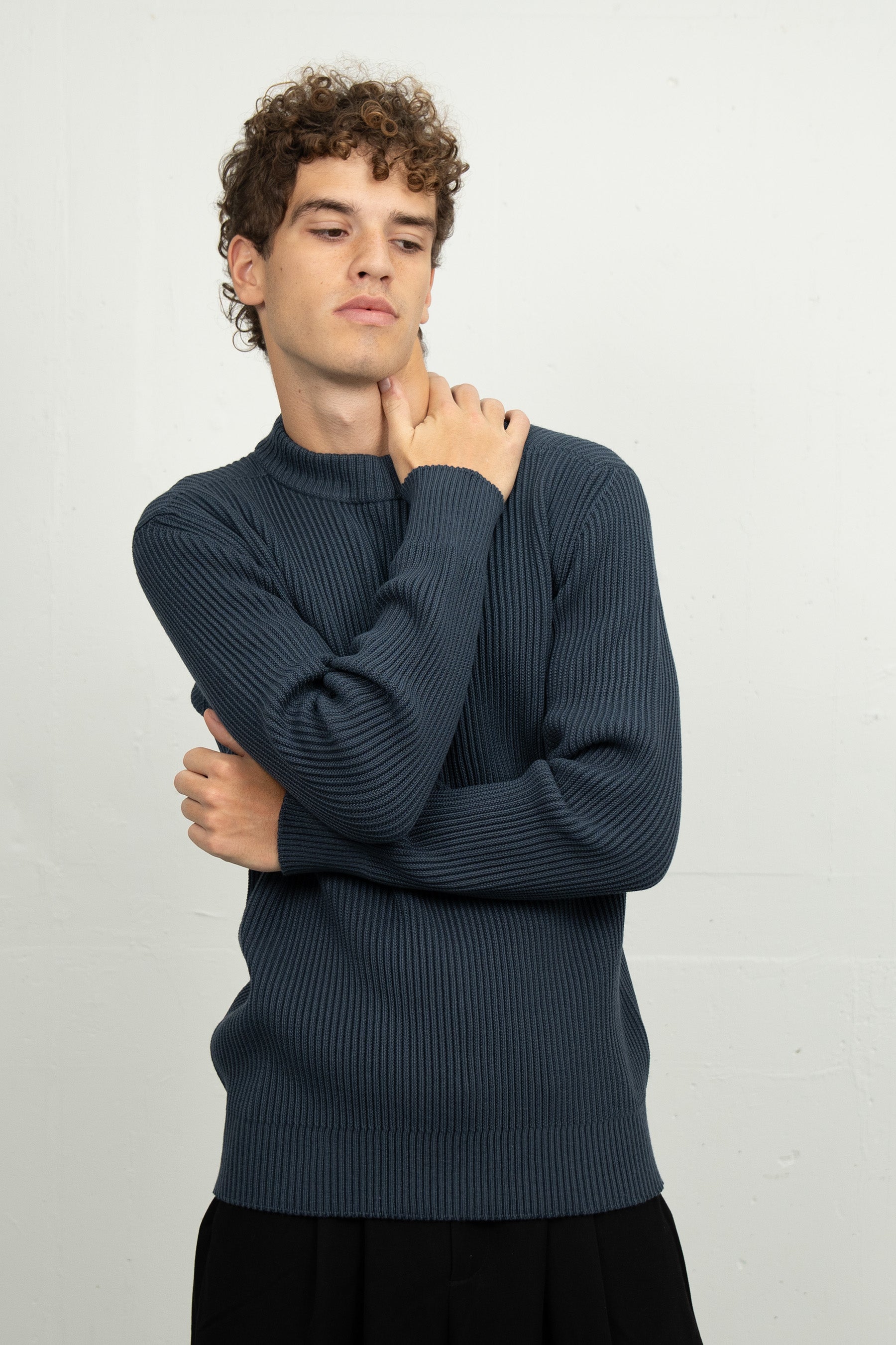 | TEKNISKE TRÆK | Manchetterne er en enkeltlags 2x1 rib. Kanten er en enkeltlags 2x1 rib, indstrikket. Kraven er en tolags 2x1 rib. |