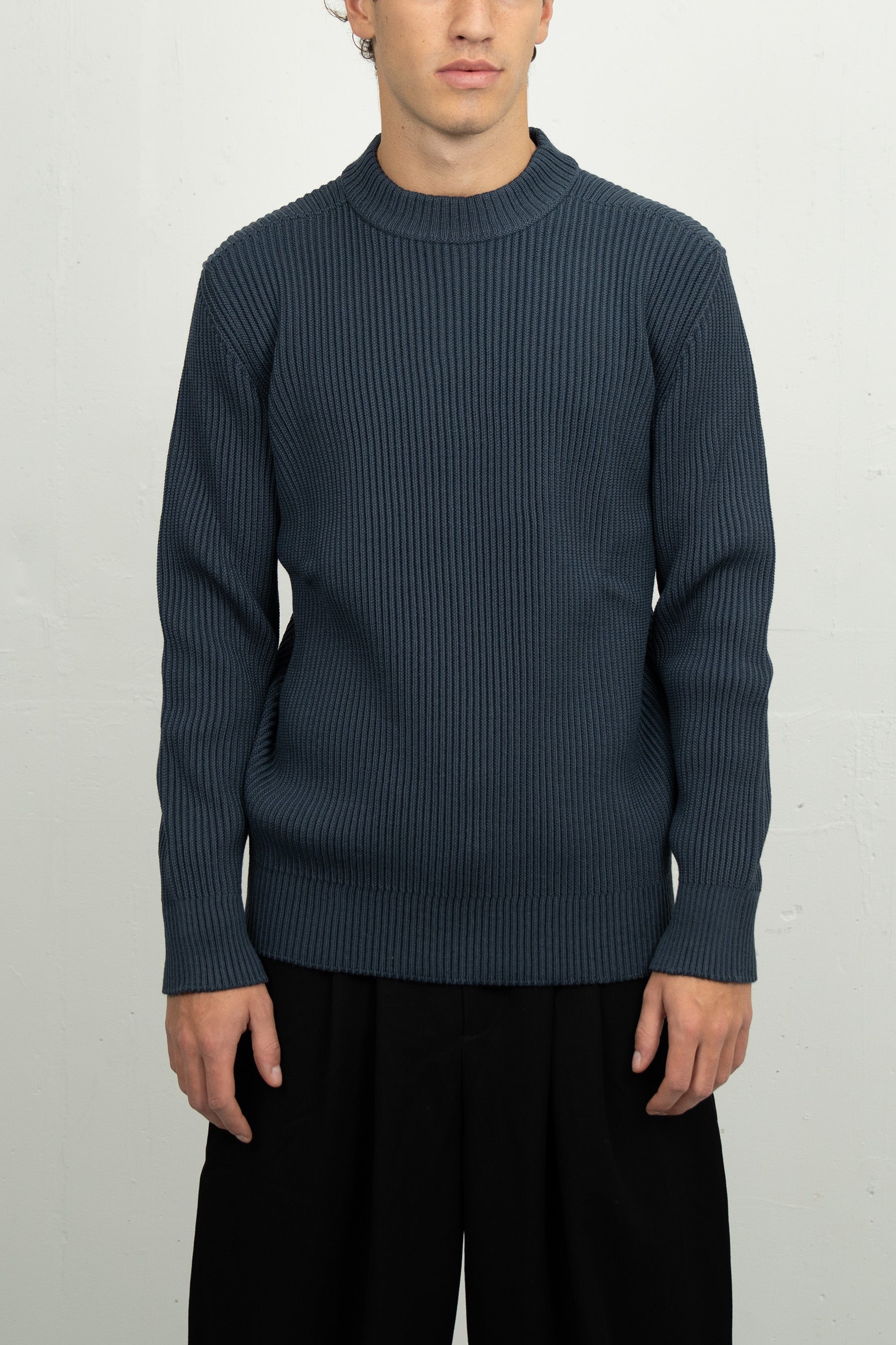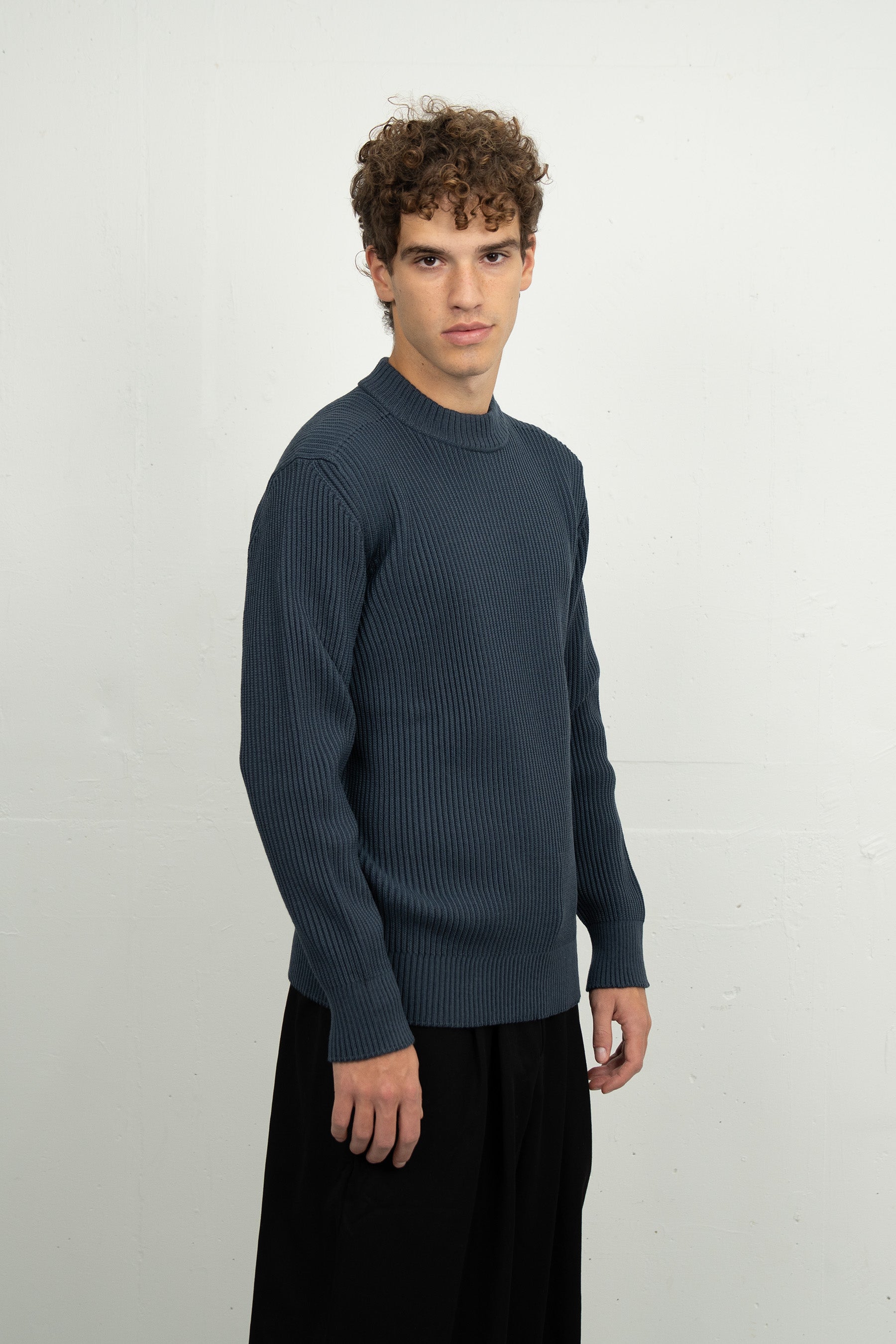 | DESIGN | Civilforsvar-inspireret crew opdateret med fully-fashioned konstruktion og let hævet skulder. Plateret merino over ny uld for styrke og formstabilitet. |