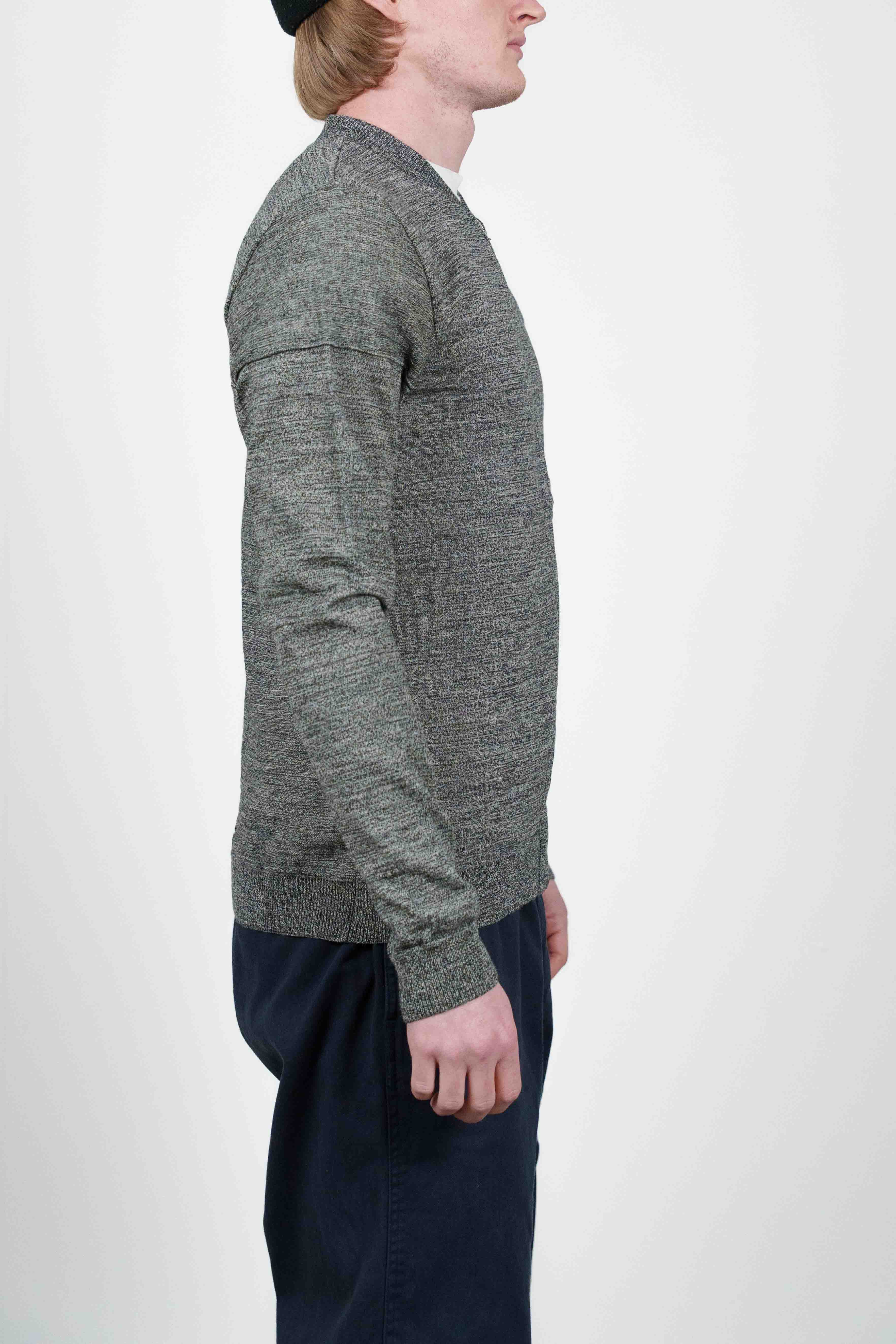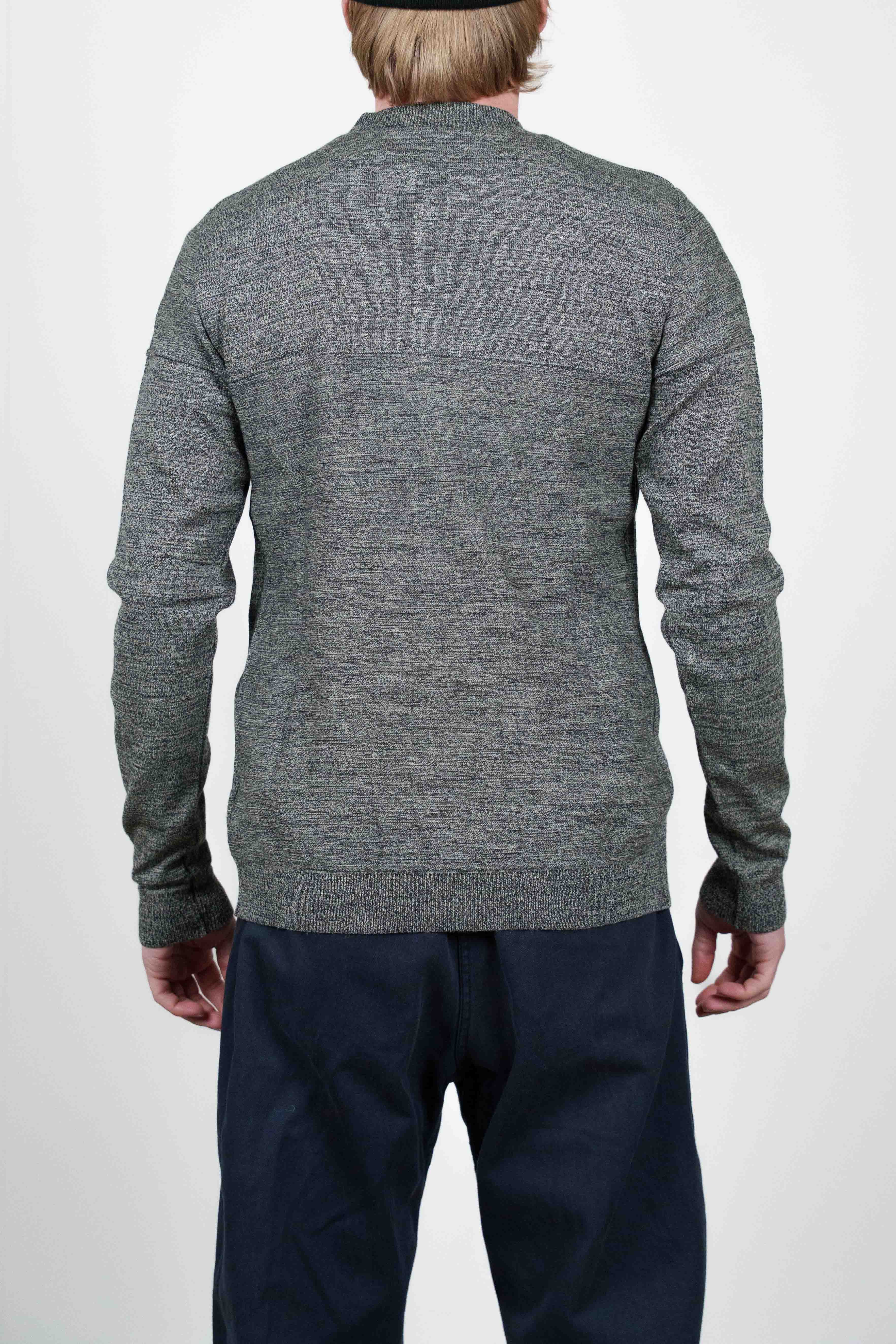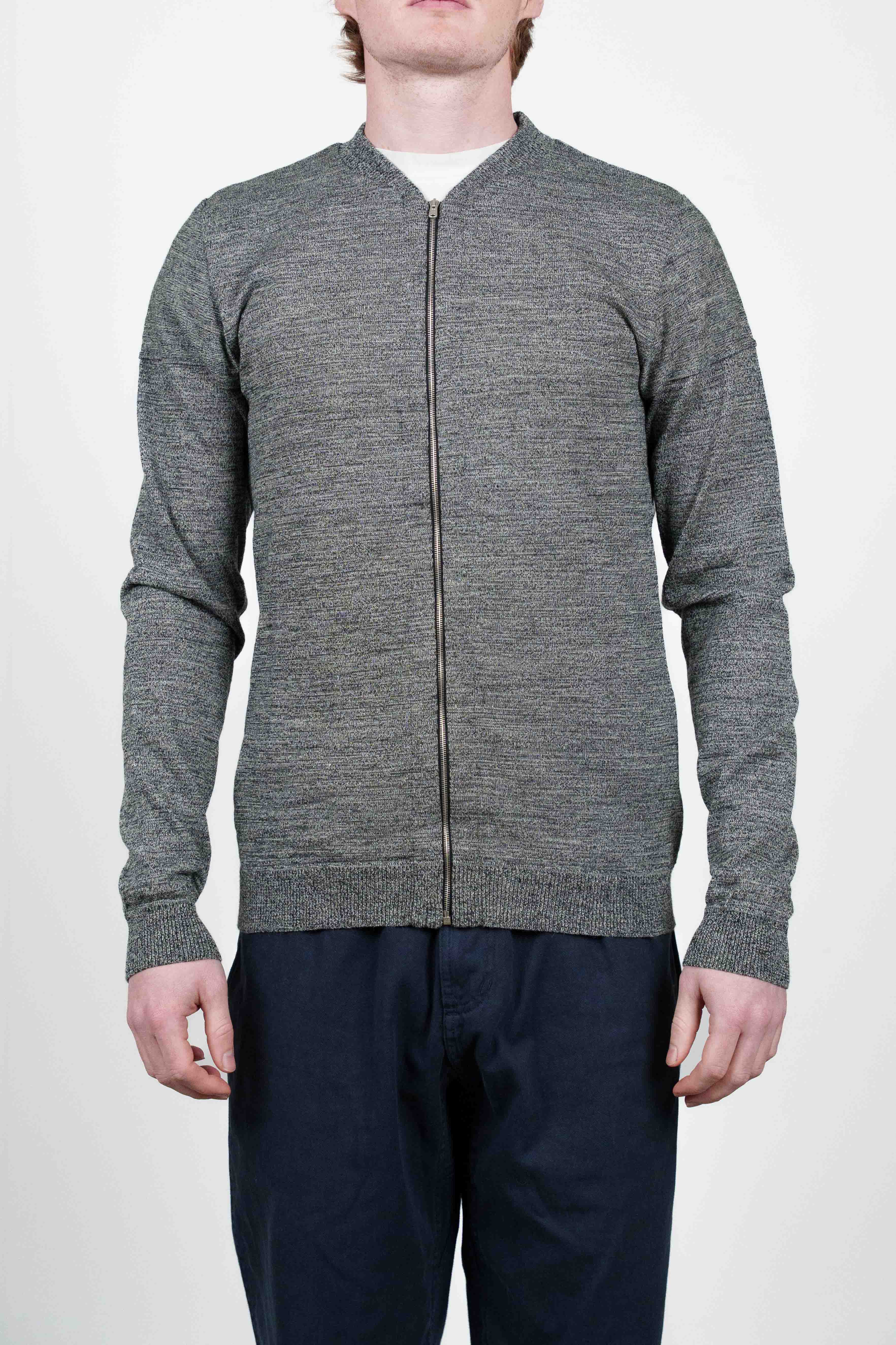 Full-zip sweater i en meleret grå strik fra vores W014-kollektion.