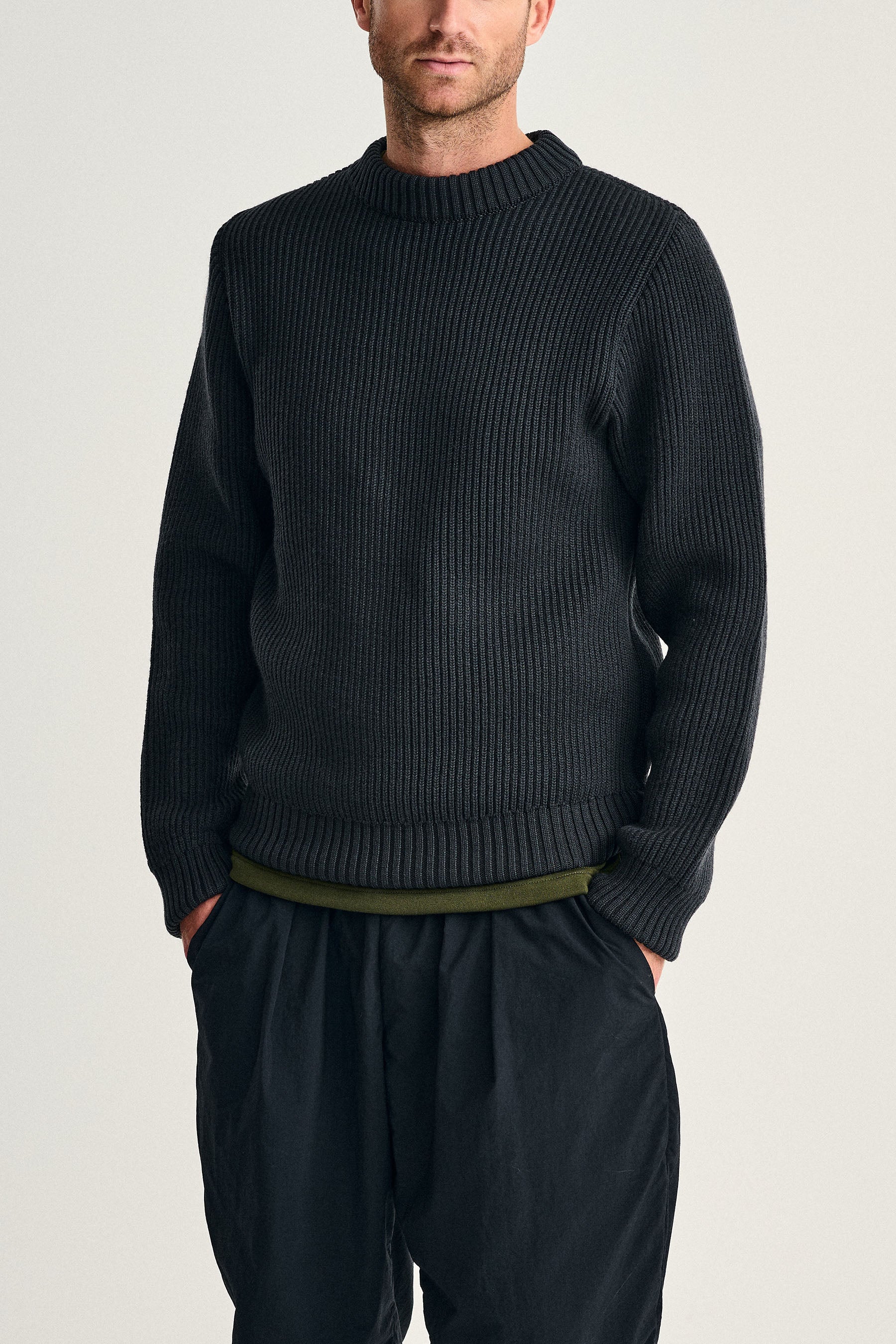 | TEKNISKE TRÆK | Kant: opstukket, 2x1 rib udvendigt, 1x1 rib indvendigt. Manchetter: dobbeltlag, 2x1 rib udvendigt, 1x1 rib indvendigt, opstukket. Krave: tolags fikseret rib. |