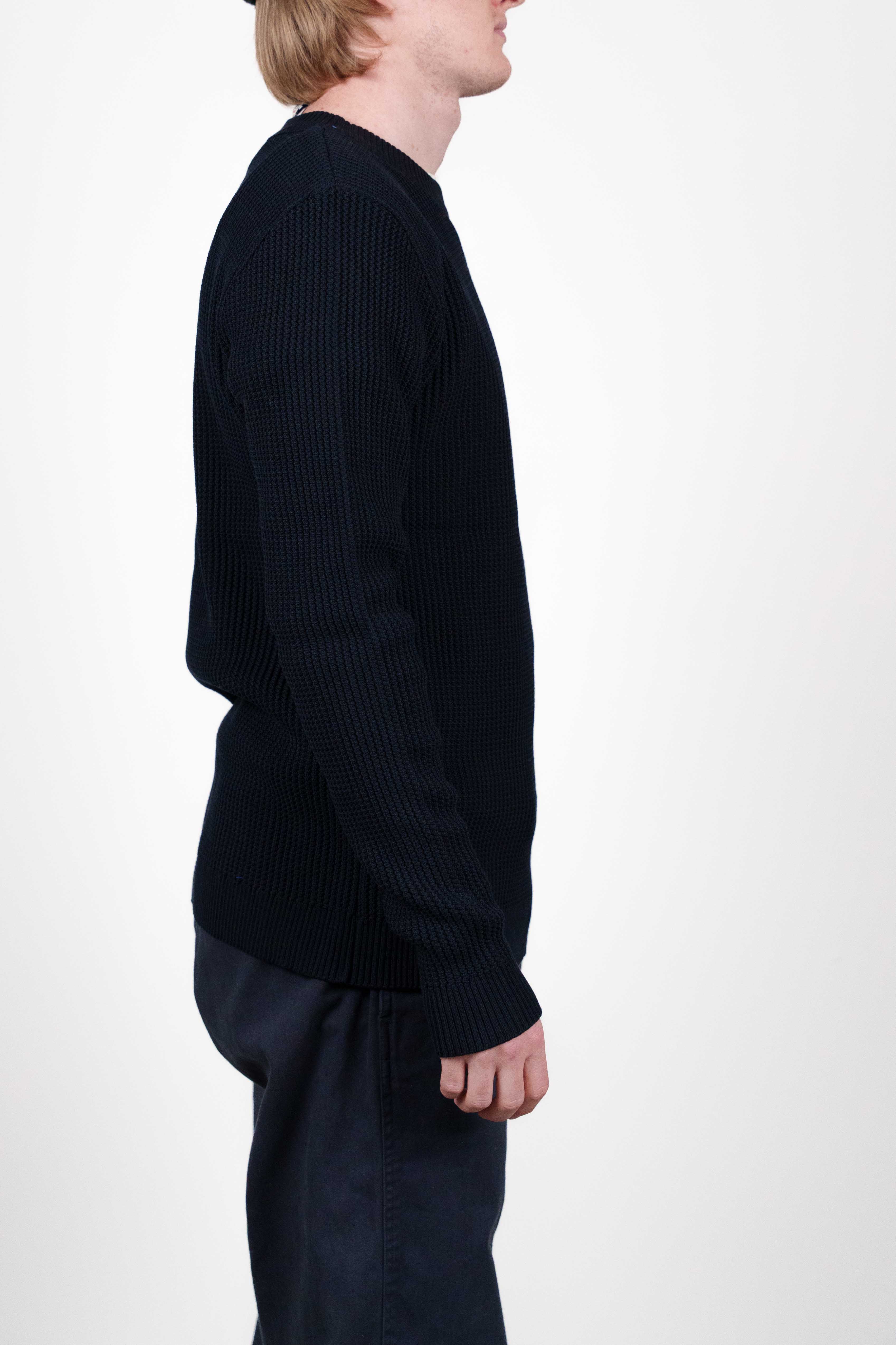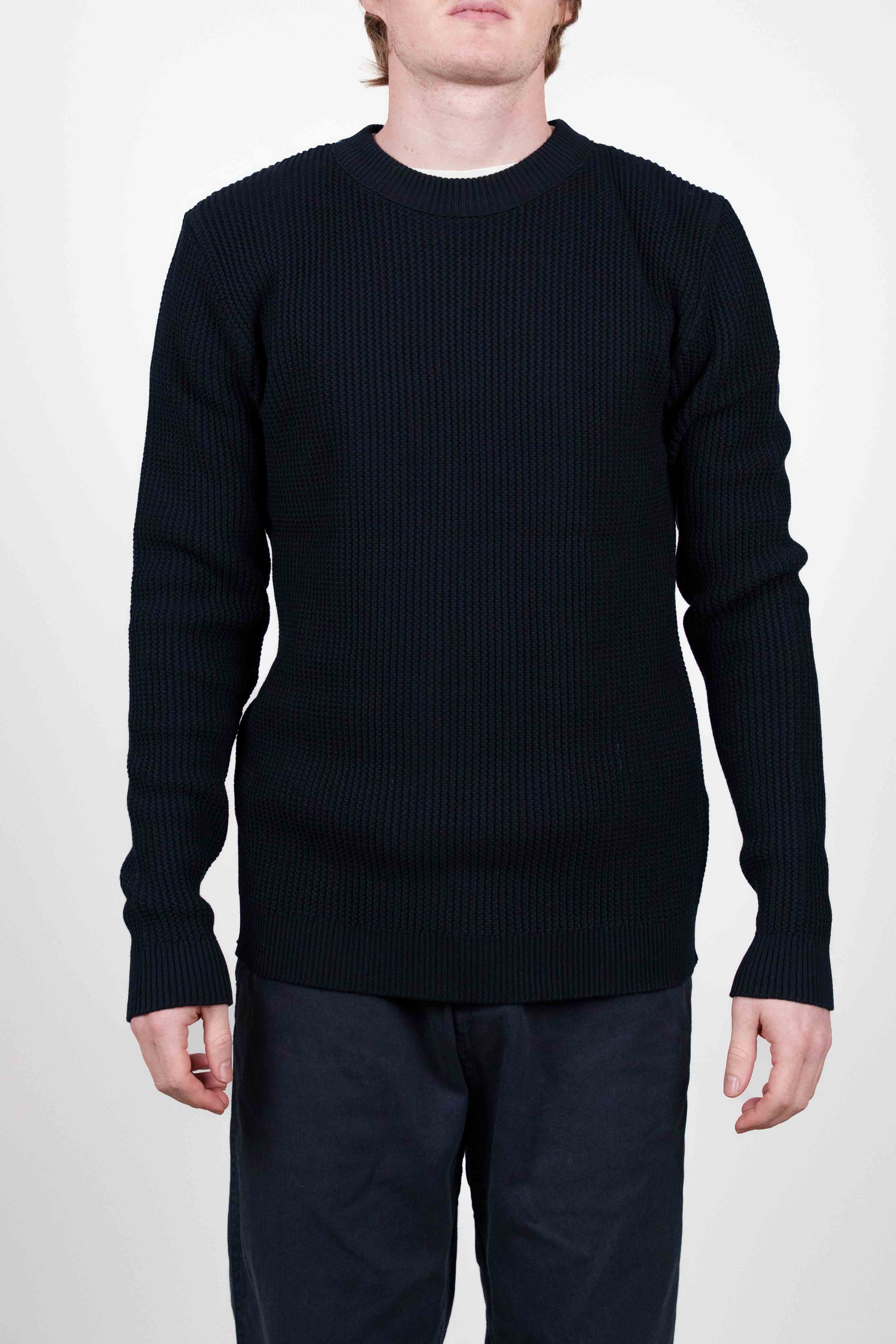 Den er designet med klassiske ribkanter ved manchetter, forneden og i kraven, hvilket sikrer en tidløs og behagelig pasform.